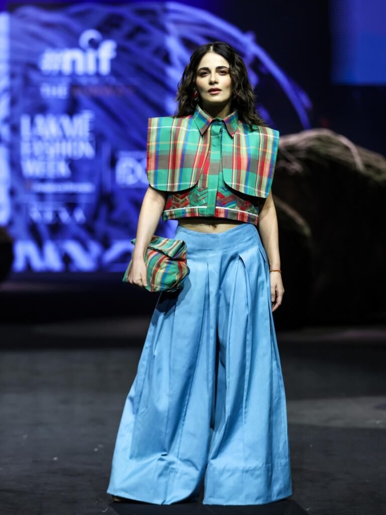A proud moment as Radhika Madan took center stage as our showstopper, wearing the winning design by designers Sneha Alishetty and Mannat Jain.